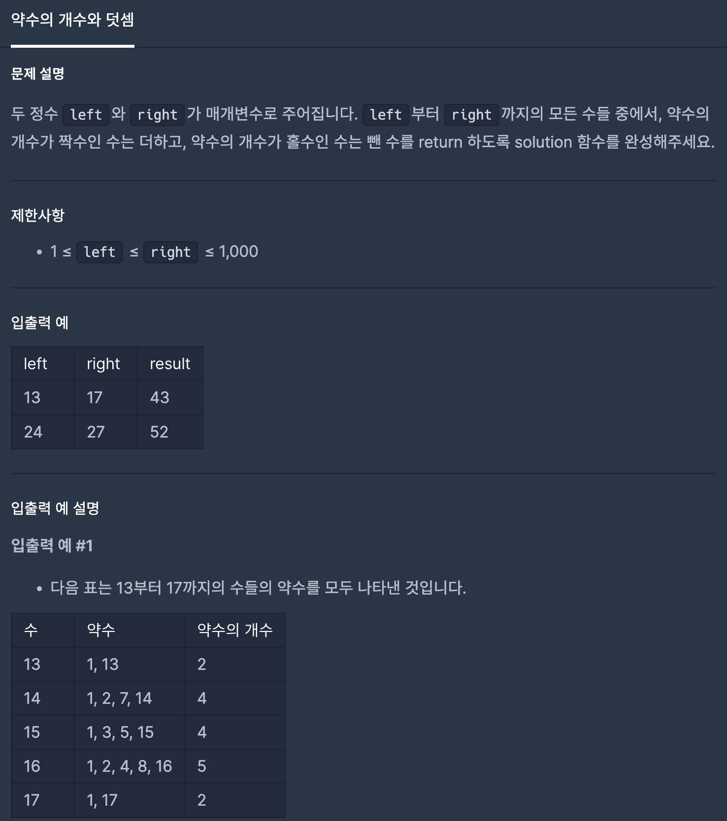 function solution(left, right) {