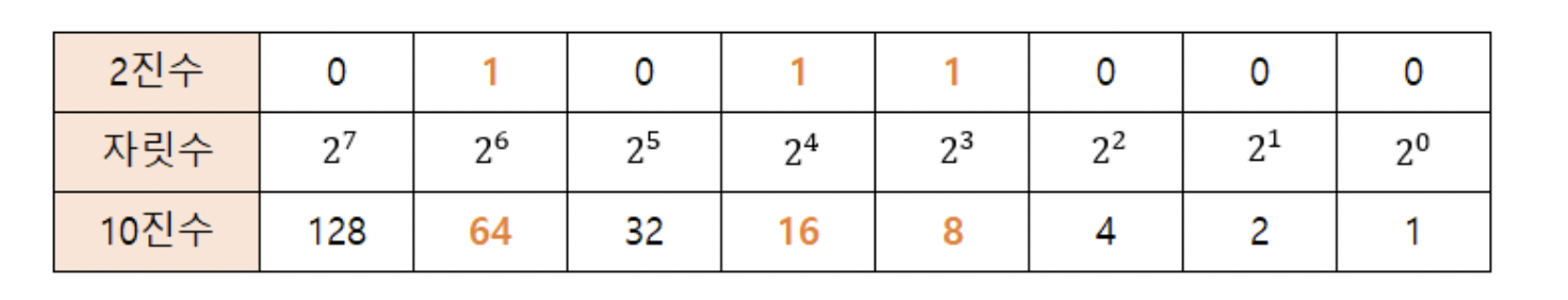 이렇게 해서 2진수가 1인 부분의 10진수 부분을 더해주면 된다