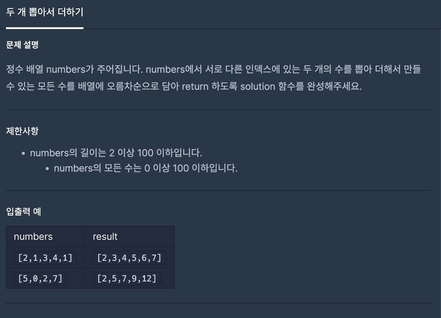 https://school.programmers.co.kr/learn/courses/30/lessons/68644