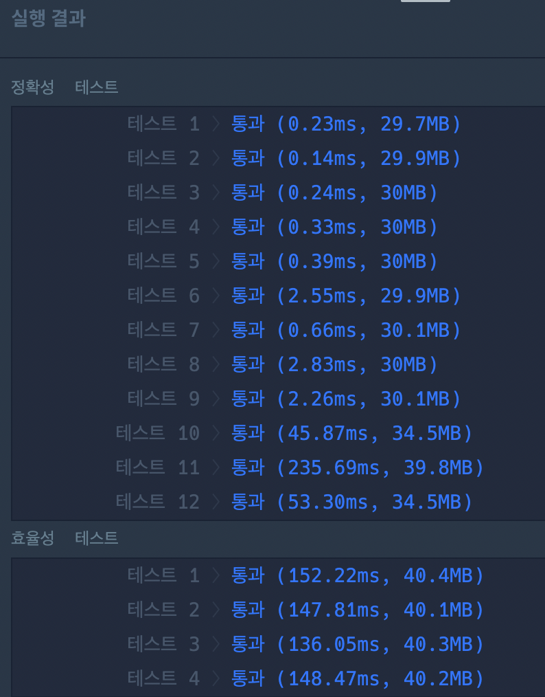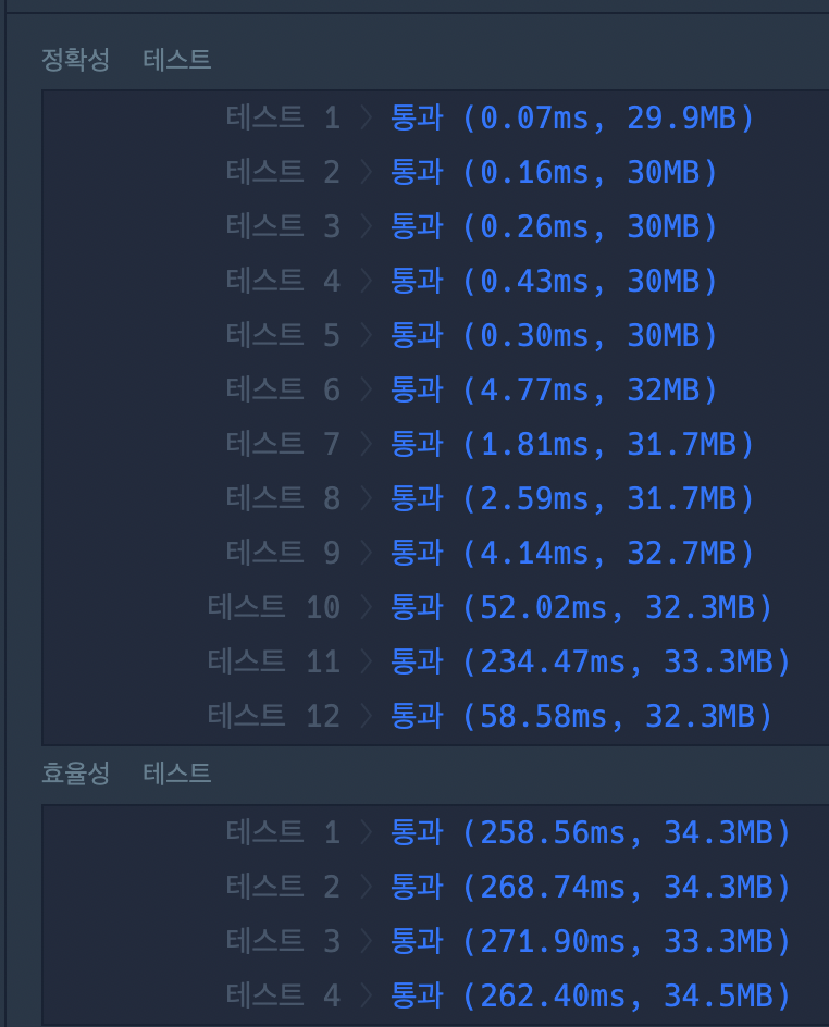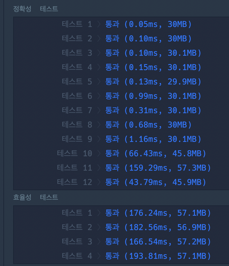 이 문제는 처음에 아 쉽네 하고 바로 풀었지만 효율성에서 시간초과되어서 시간이 조금 걸렸다.