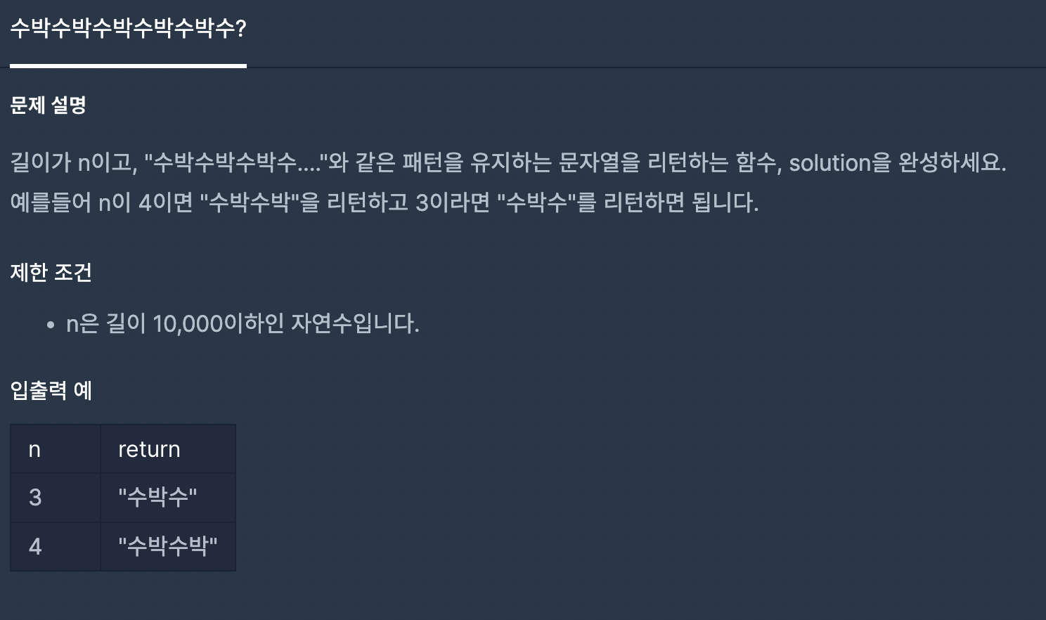 return ((n)=> "수박".repeat(n/2 + 1).slice(0,n))(n);