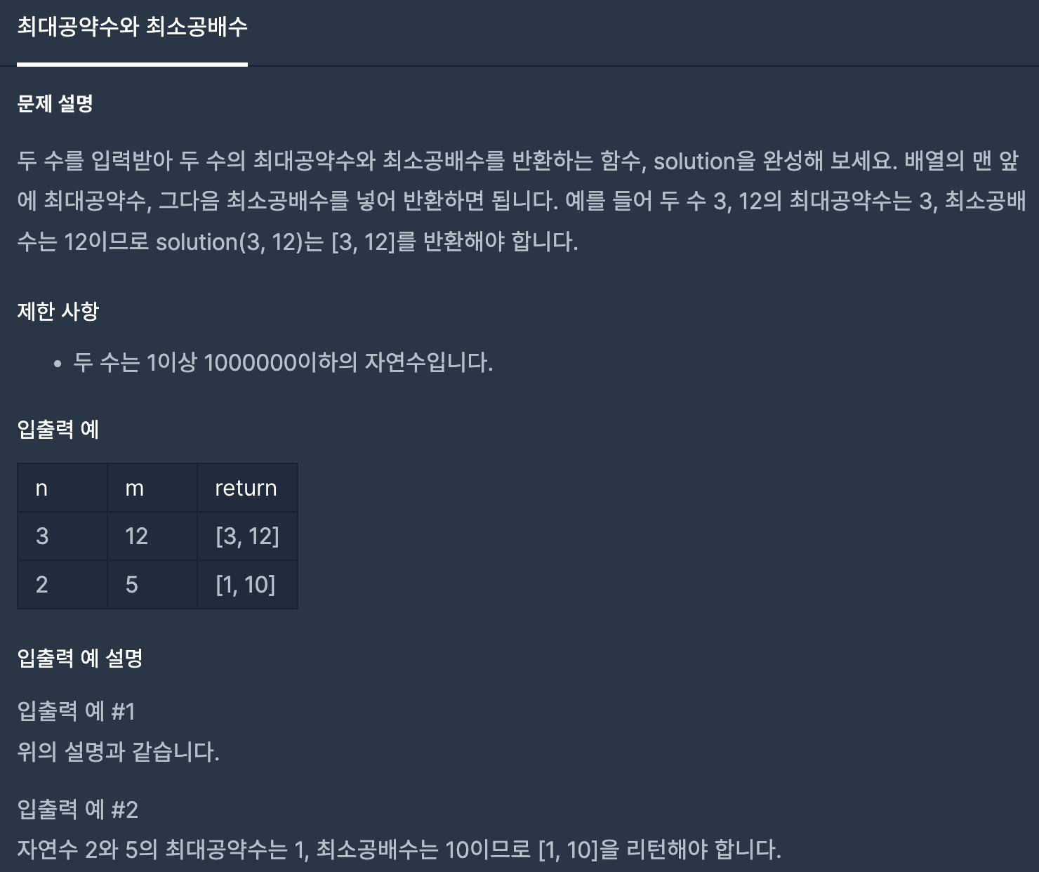 마지막으로 최소공배수는 두 수를 곱하고 최대공약수로 나눠주면 된다.