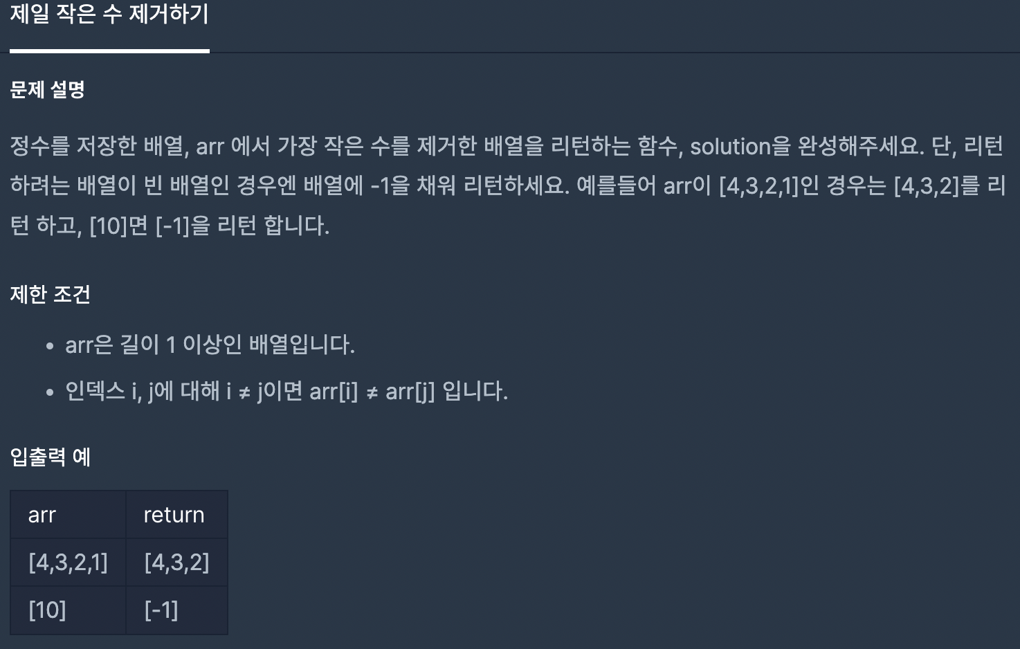 즉 원 배열에서 제일 작은 숫자만 제거하고 다시 출력해줘야한다.
