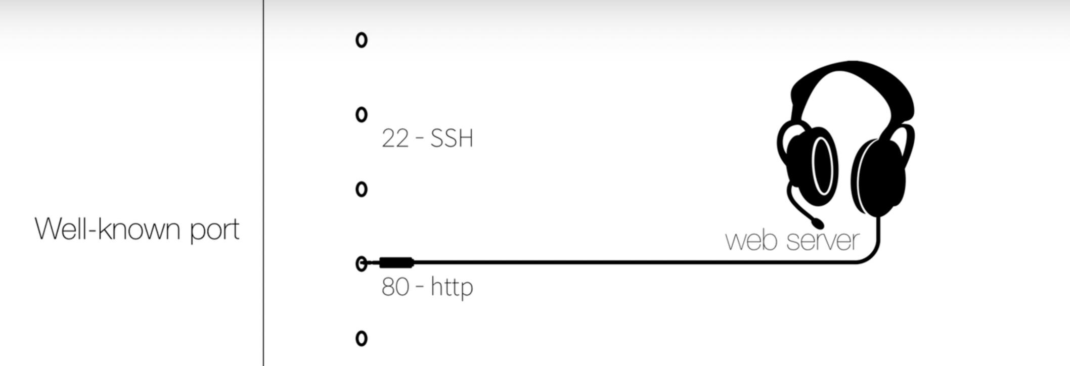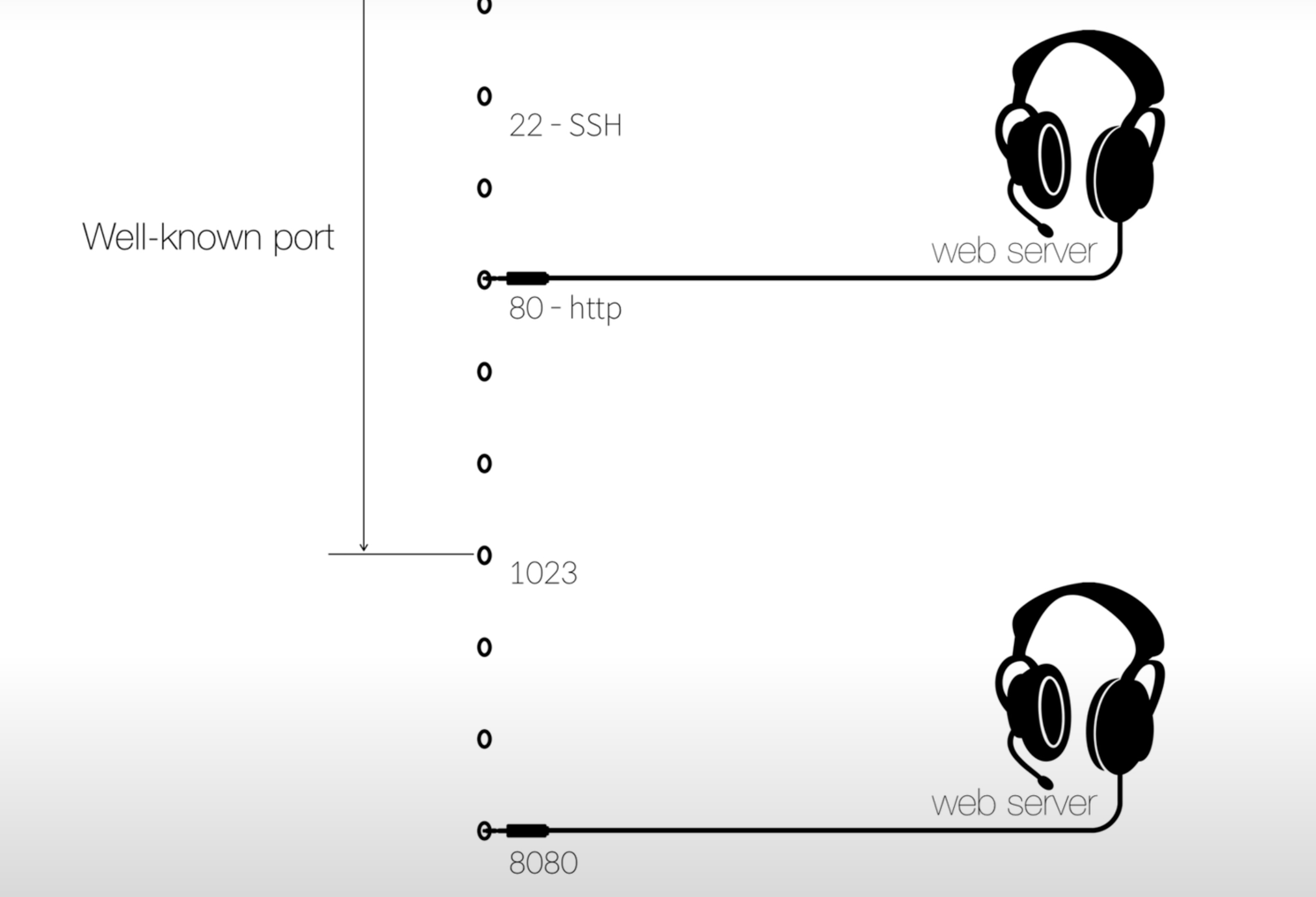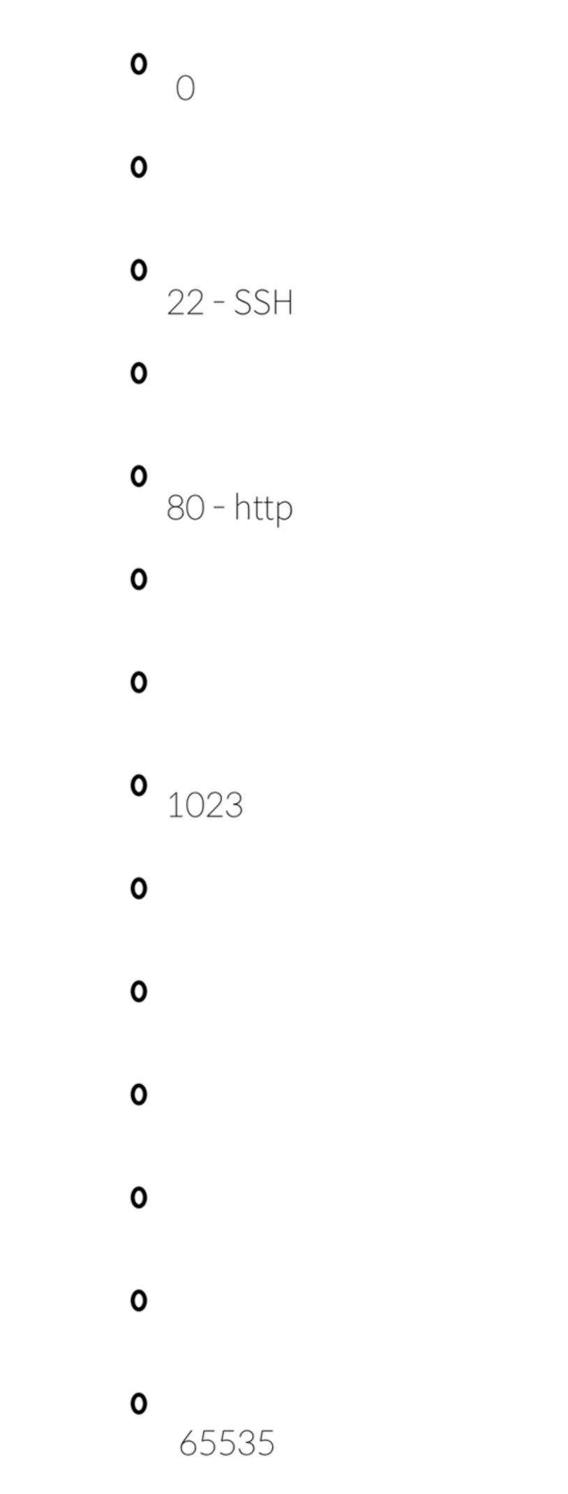 이 예약된 port를 well-known port라고 한다. 즉 미리 어떠한 용도로 쓸 것인지 정해져있다. 0 ~ 1023까지 전부 well-known port이다. 이 well-known port는 접속할때 특별히 port 번호를 명시하지 않아도 가능하도록 되어있다 (ex :80을 생략해도 웹 서버에 접속할 수 있는 것 처럼)