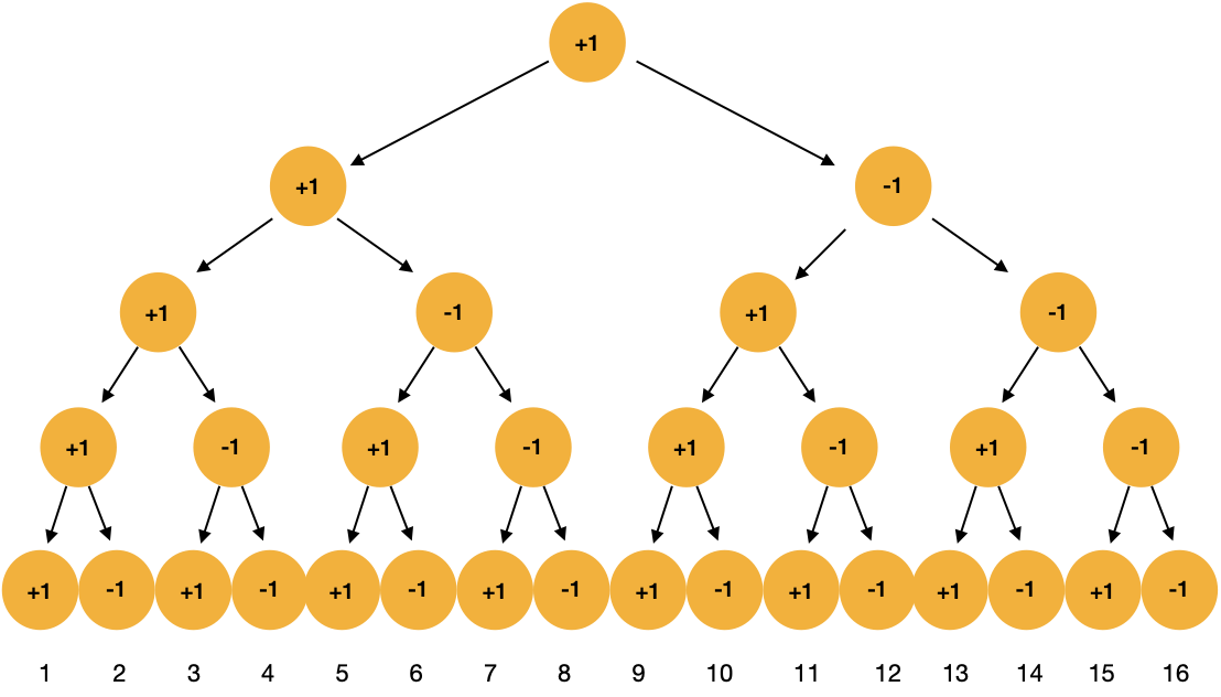 이렇게 1이 다섯개이고 각 1은 +1 or -1 둘 중 하나만 가능하다