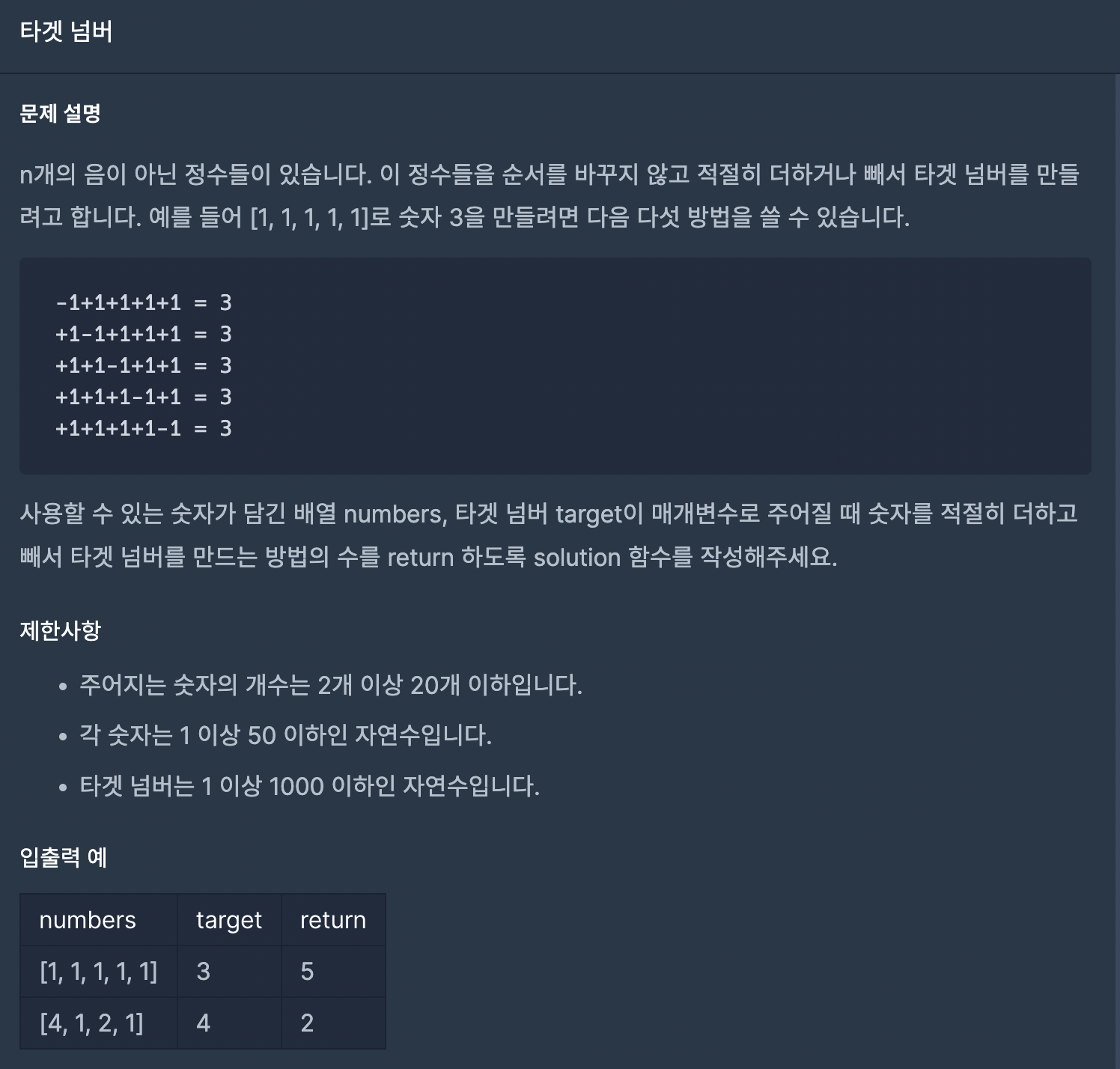 [프로그래머스] 타겟 넘버 (javascript)