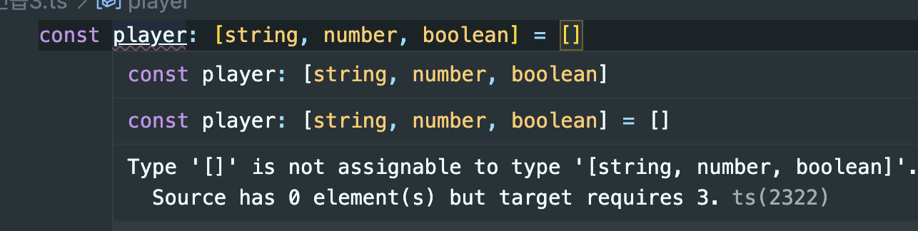 예를들어 player는 string, number, boolean 이 3가지 타입을 정의하였으므로