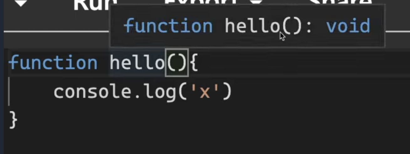 hello라는 함수를 만들고 보면 void라고 나오는 것을 볼 수 있다.