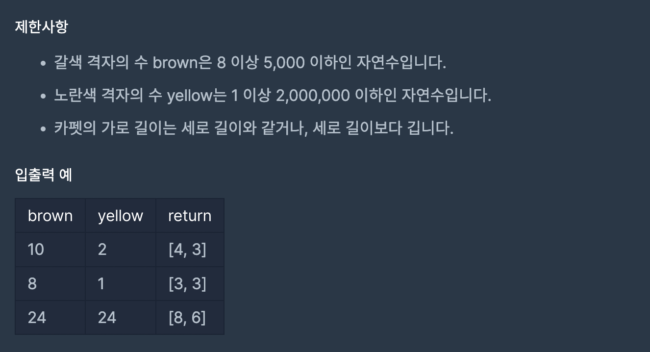 https://school.programmers.co.kr/learn/courses/30/lessons/42842