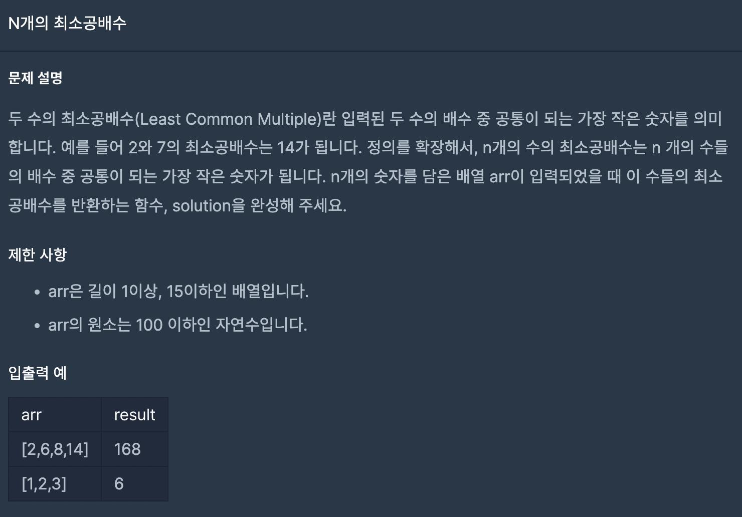 arr.reduce((a,b) => a*b / gcd(a,b)) 라고 해주면 된다.