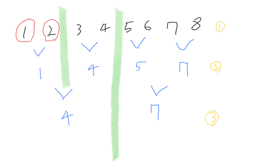 1,2가 1그룹 , 3,4가 2그룹, 5,6이 3그룹 7,8이 4그룹이라고 했을 때