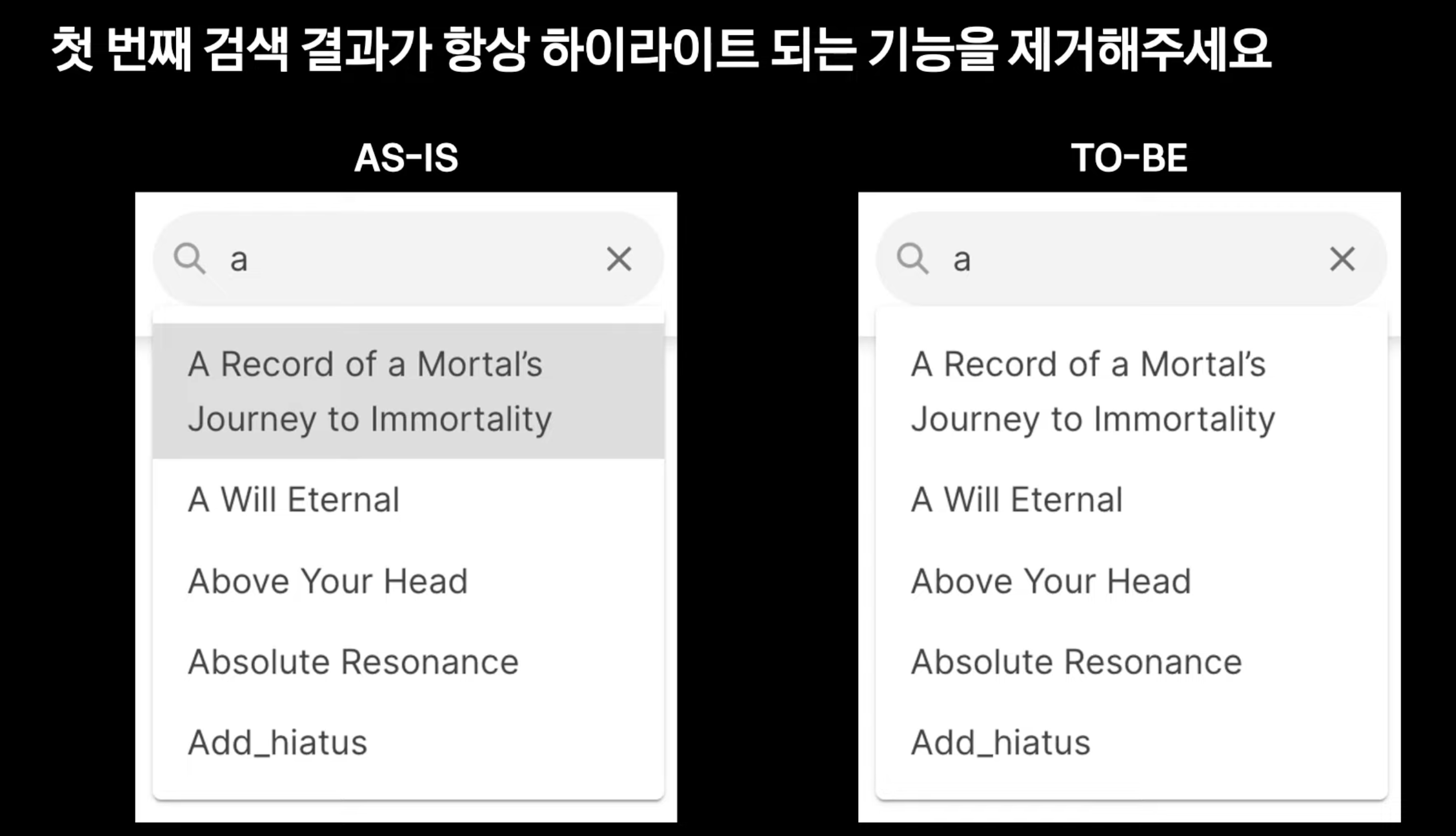 따라서 첫번째 요소가 자동으로 하이라이트되는 것은 매우 당연한 동작이었다.