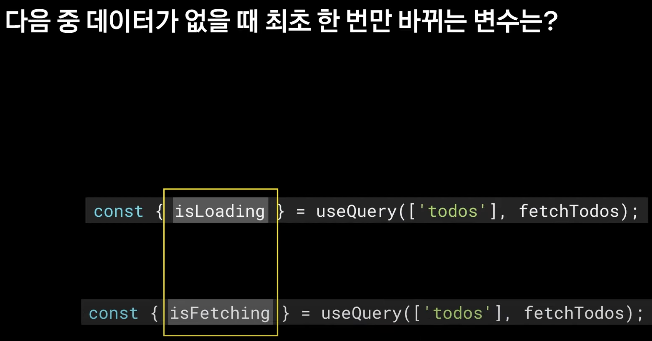 답은 'isLoading'이다.