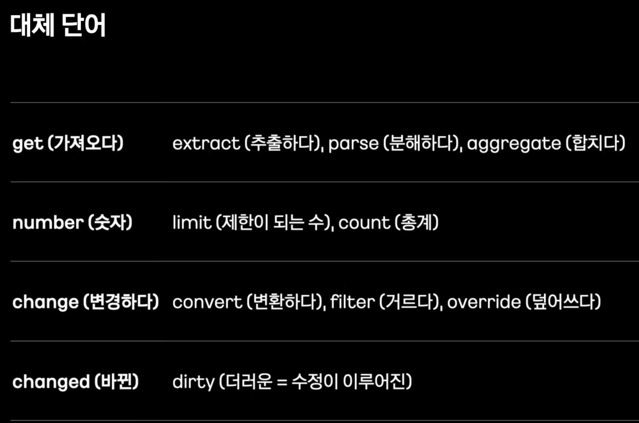아하 단어를 바꾸어주었구나