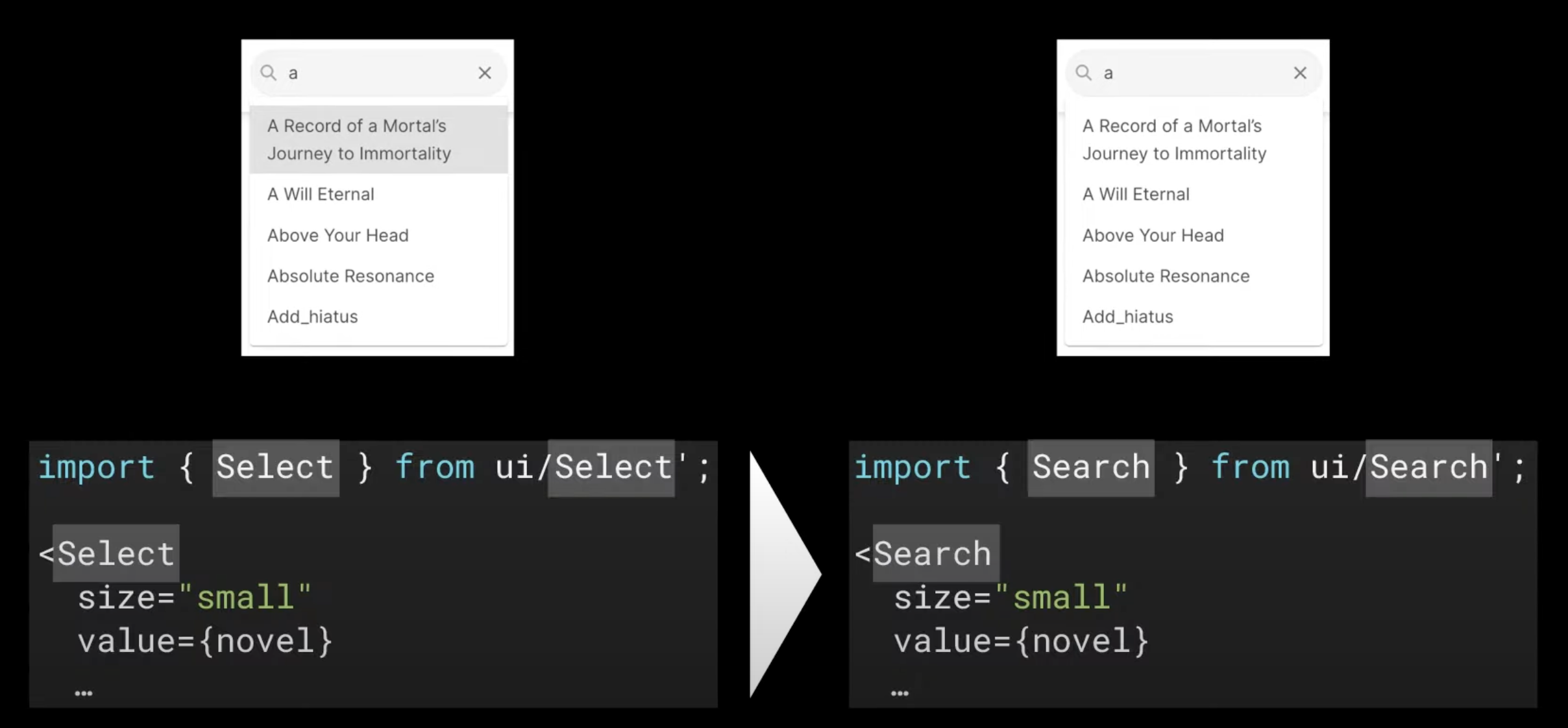 그런데 이 select컴포넌트와 매우 유사하게 동작하는 search라는 컴포넌트도 존재하였다.
