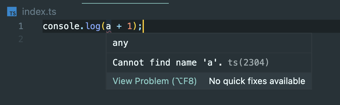 타입스크립트는 a가 정의되어있지않아 찾을 수 없다고 에러가 뜬다.