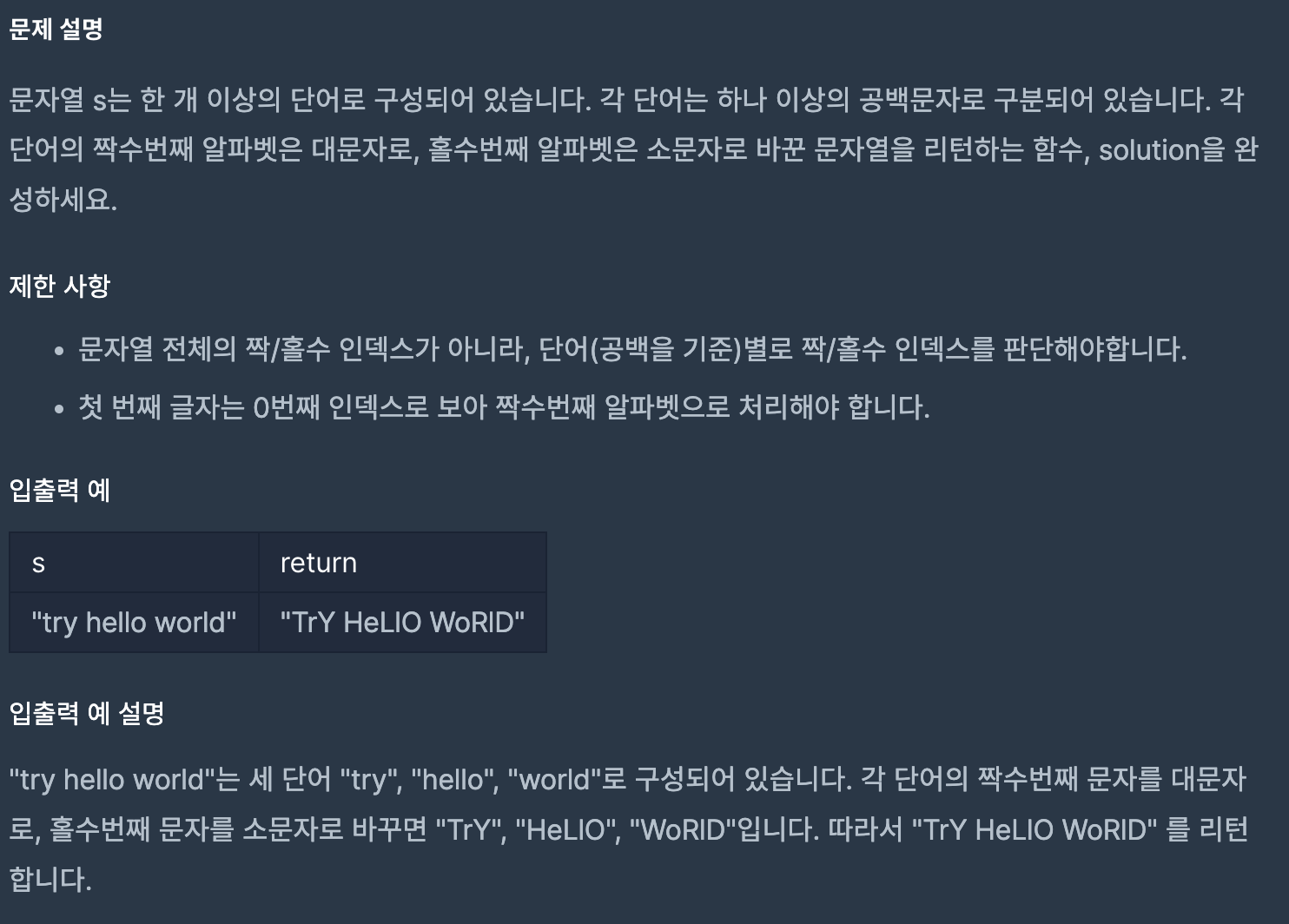 어차피 문자열이 1개이면 무조건 대문자이기에 일단 전부 대문자로 만들어주고 연속되는 문자열 즉 짝수 홀수구분해야하는 문자열만 뽑아서 조건에 맞게 바꿔준다.
