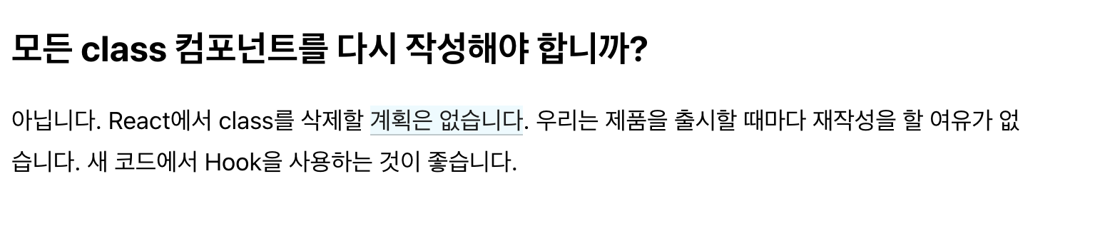 이미 페이스북에 수만개의 class 컴포넌트가 존재하고 이를 함수 컴포넌트로 교체할 계획도 없다고 하였다.