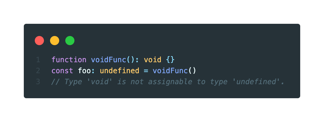 따라서 return 타입이 void인 함수를 변수에 할당하면 여전히 그 변수는 타입이 void 이다.