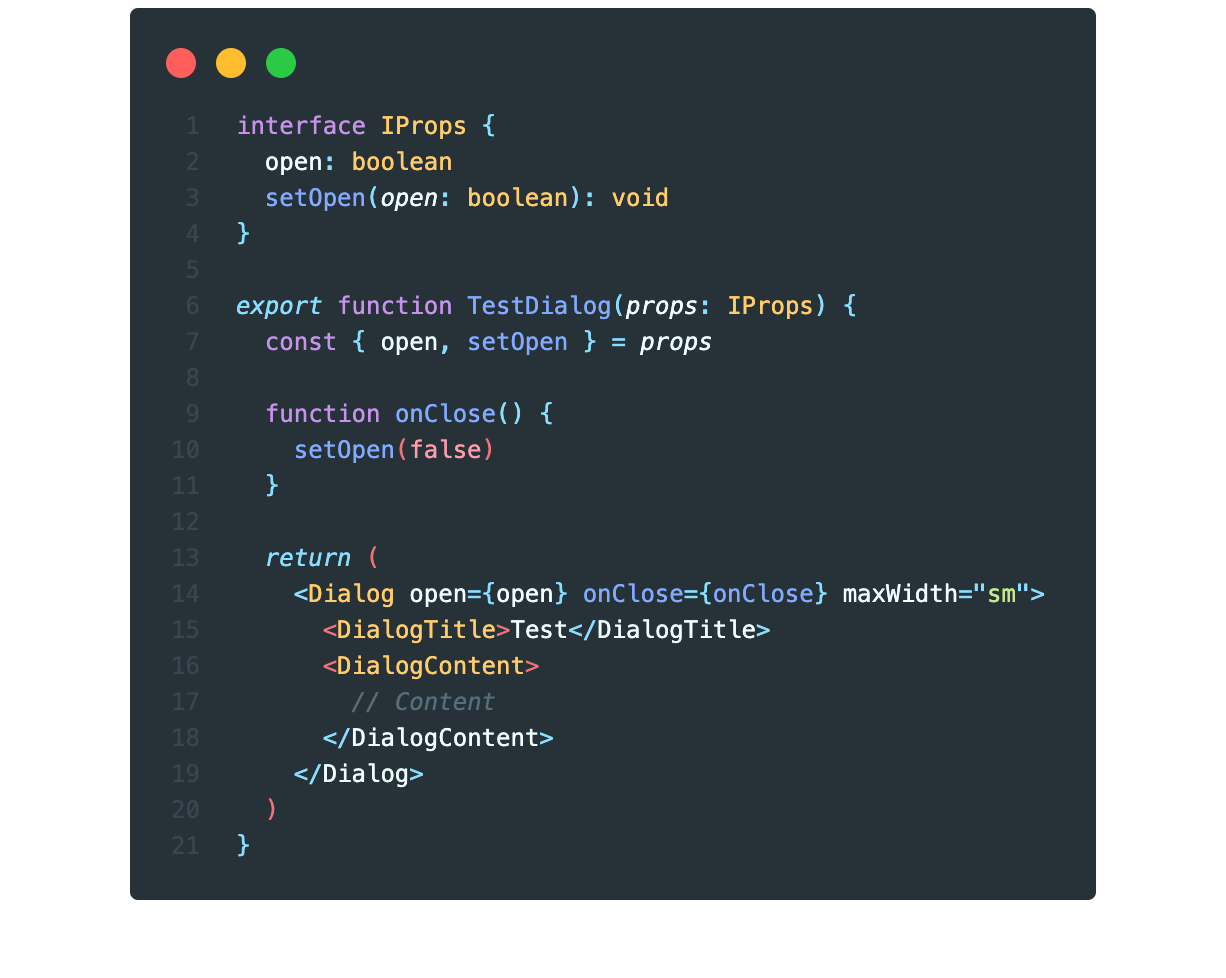 setOpen 함수는 state를 변동만 시키고 어떠한 값도 return하지 않는 함수라는 것을 바로 알 수 있다.
