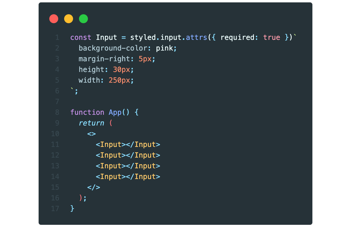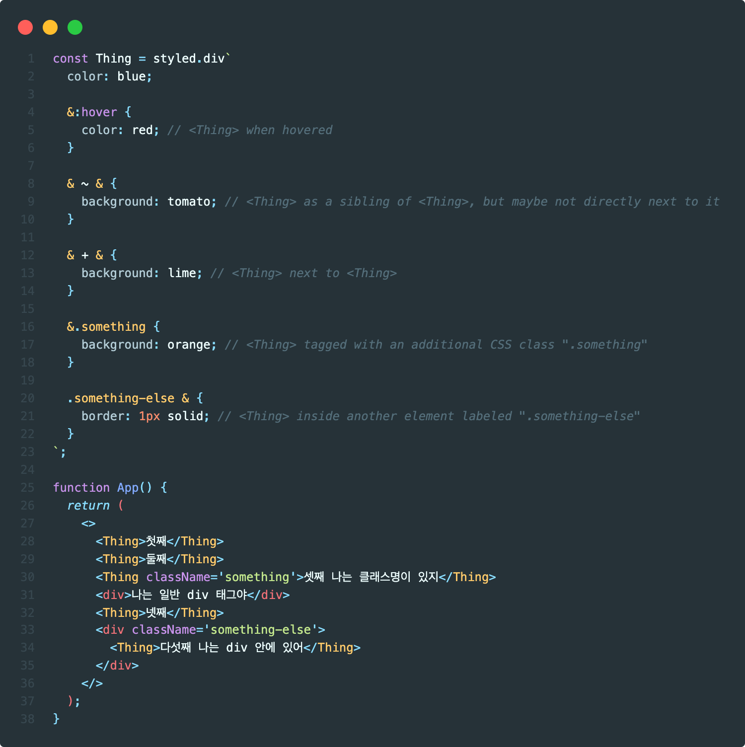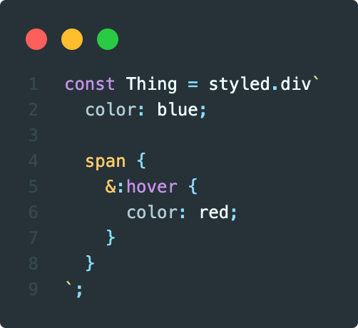 즉 컴포넌트 태그에다가 hover를 작성하거나 attrs를 사용할 필요없이 단일 앰퍼샌드(&)를 사용하면 간단하게 구현할 수 있습니다.