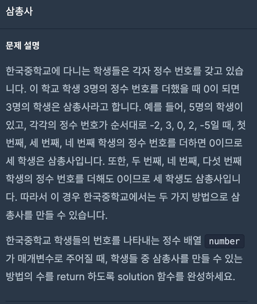 처음에 dfs먼저 생각이 났지만 number의 길이가 13밖에 되지 않기 때문에 3중 for문으로 해도 되겠다고 생각했다.