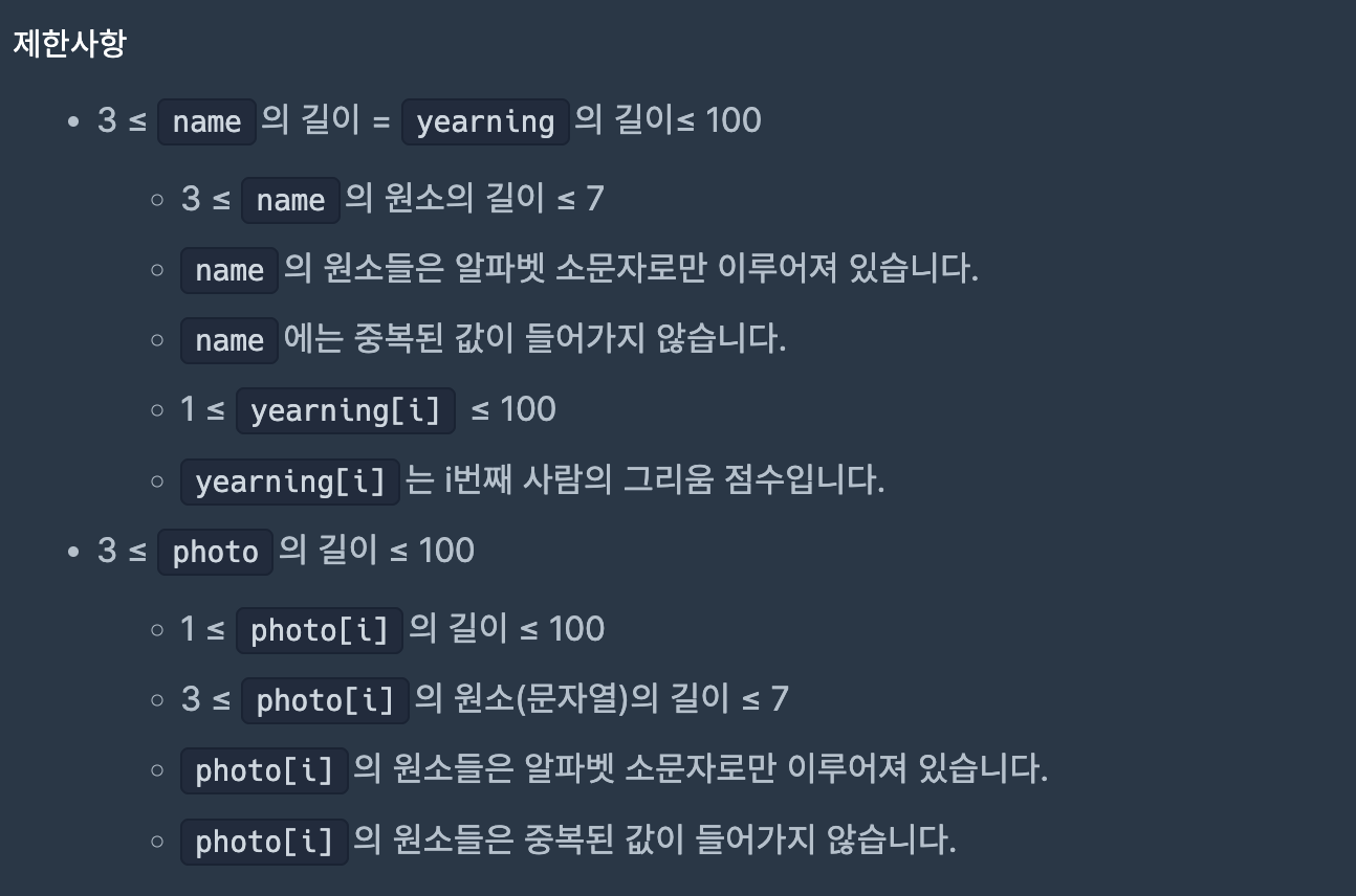 // 내부 reduce는 배열안 배열의 각 그리움 점수의 합을 계산하여 return해준다.