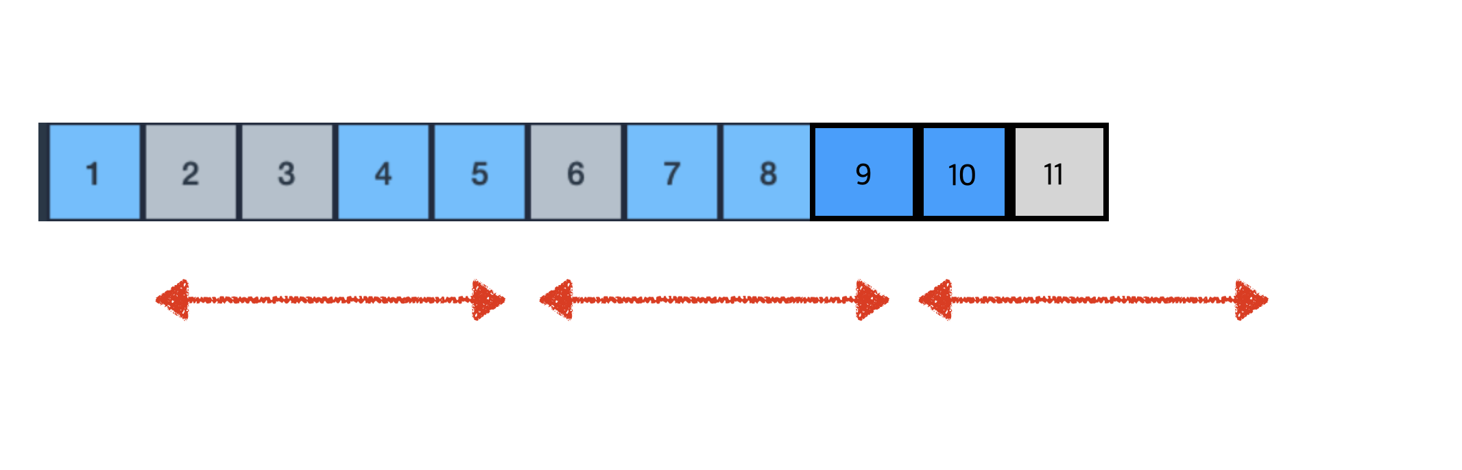 두 번째 롤러는 [6,7,8,9] 이고 마지막 숫자는 9이다. 따라서 section안에 9이하 숫자는 모두 지우고 result + 1을 해준다.