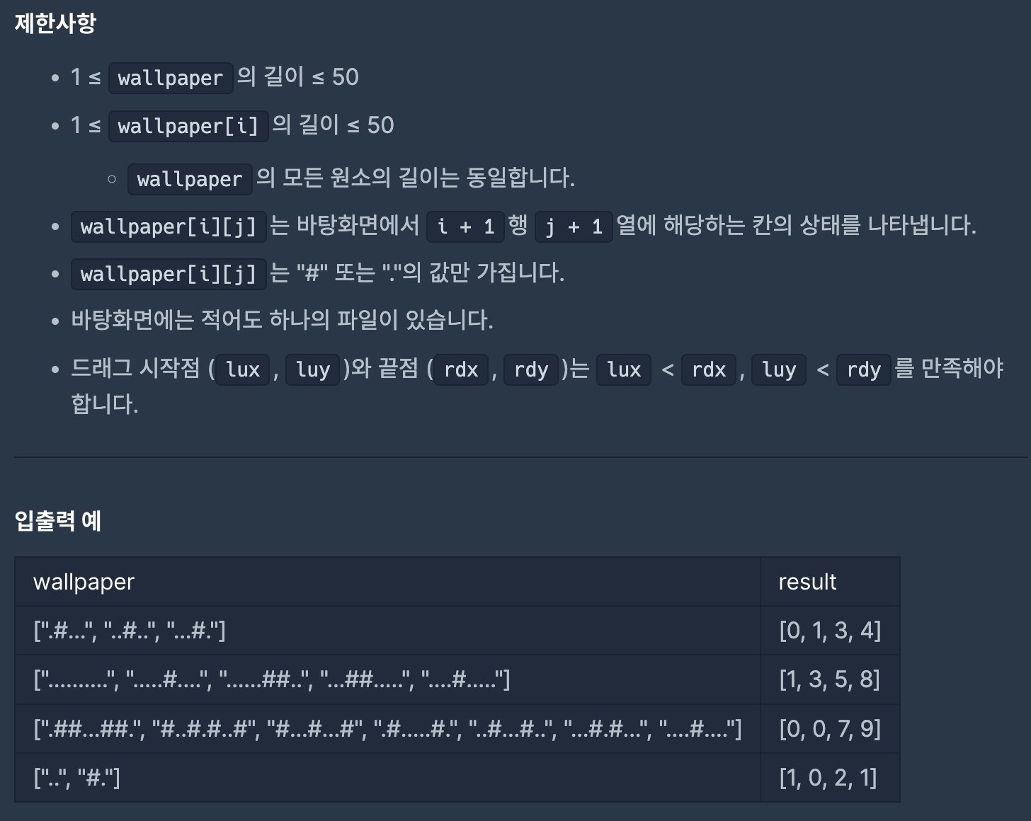 let [x1, y1, x2, y2] = [wallpaper.length, wallpaper[0].length, 0, 0];