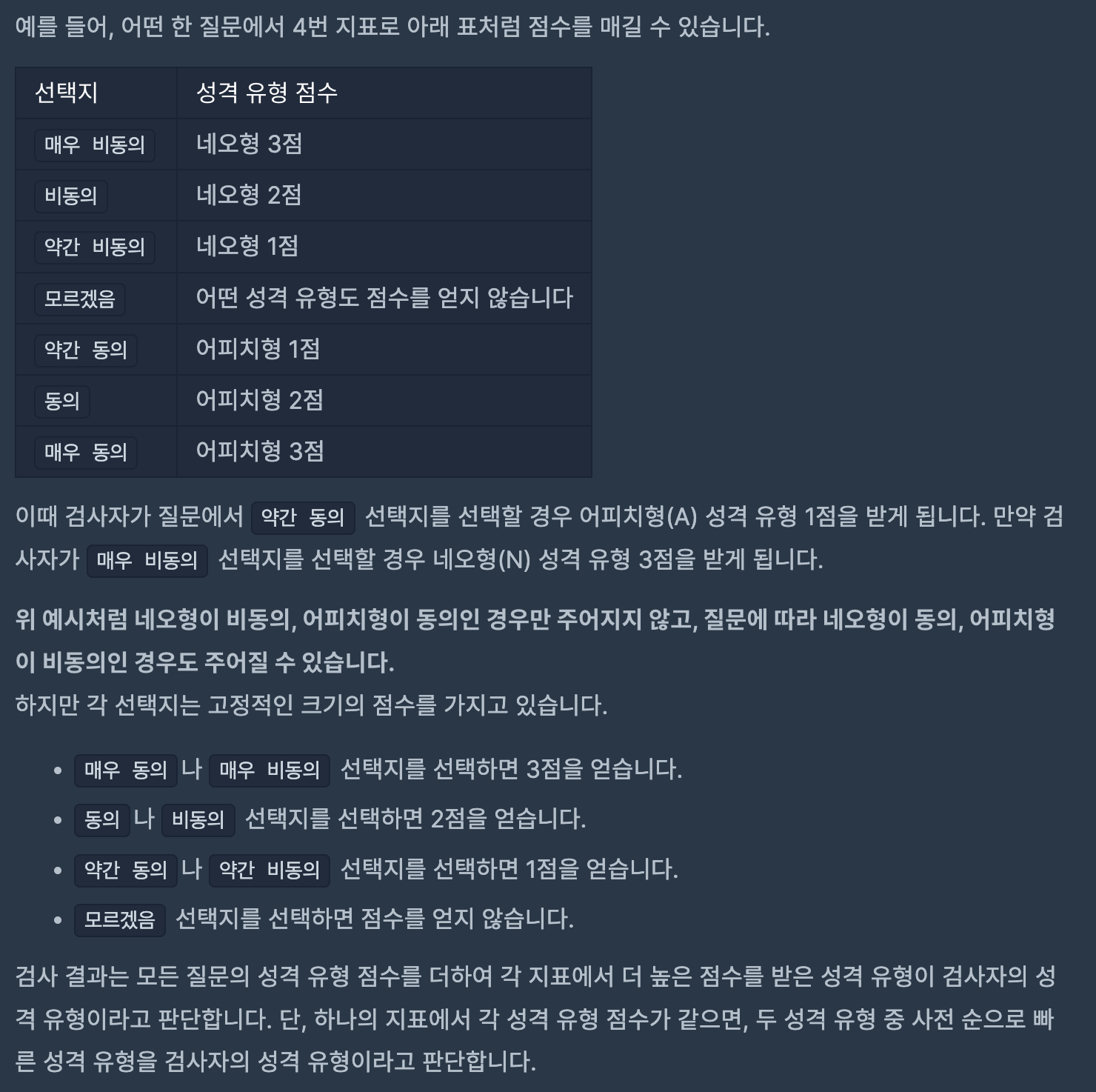 또한 성격 타입이 4쌍이라서 그렇게 많지 않으니 배열에넣어서 순회를 돌리는 등 보다 그냥 반복이 있더라도 이런식으로
