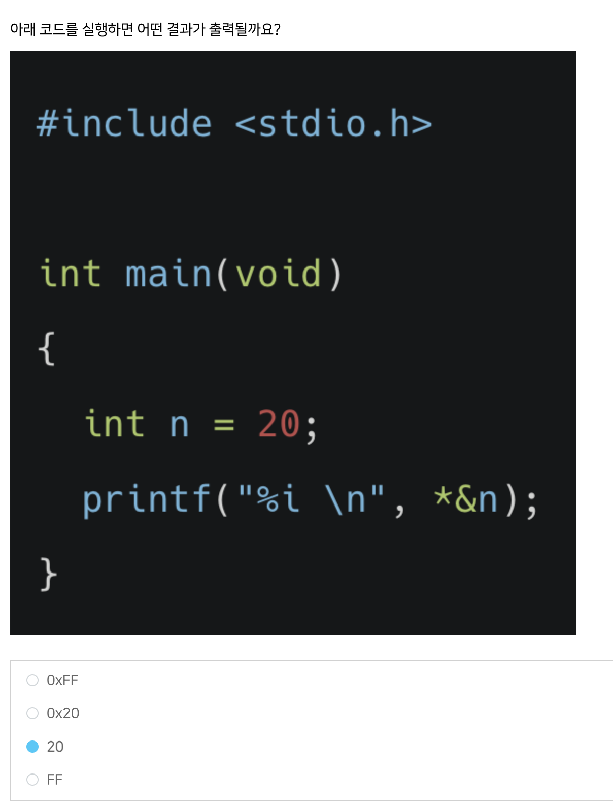 printf("%i \n", *&n); 은 printf( "%i \n", n) 과 같다.