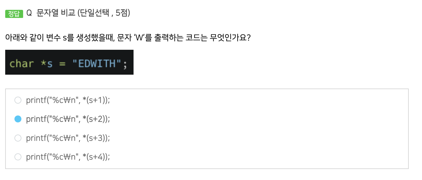 printf("%s\n", s)는 "EDWITH"가 출력된다.