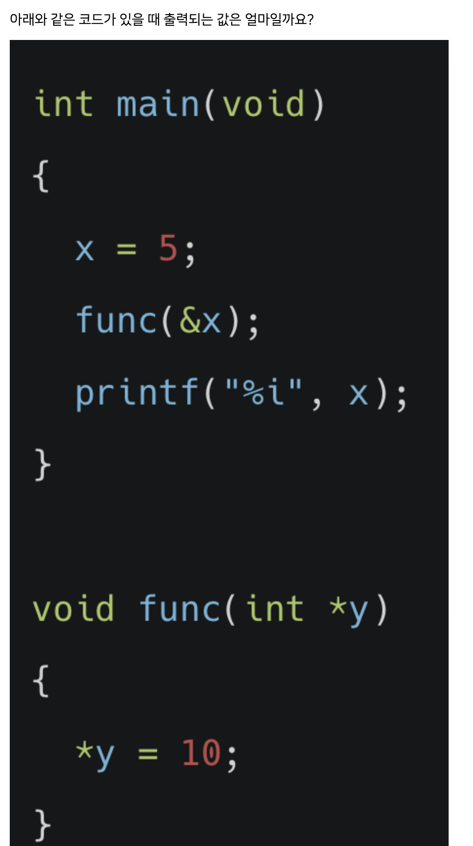 printf("%i\n", x); // 5. x의 값을 출력하여 변경된 값을 확인