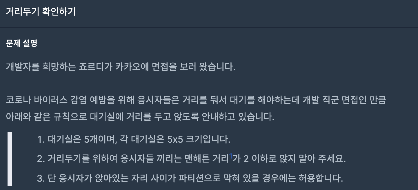 3️⃣ 2번을 충족시키지 못하면 모두 거리두기를 지키고 있기 때문에 result.push(1)