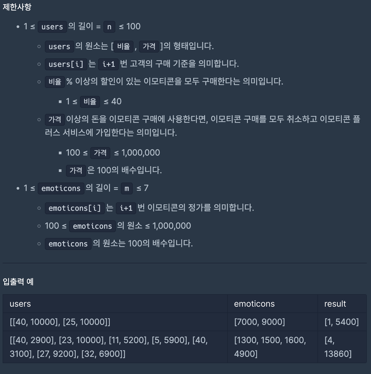 function solution(users, emoticons) {