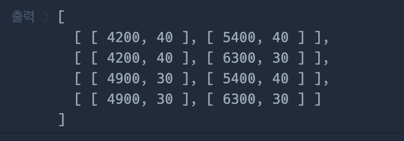 입출력 예#1 을 기준으로 generateDiscountCombinations()를 호출하면 생성되는 배열은 아래와 같다.