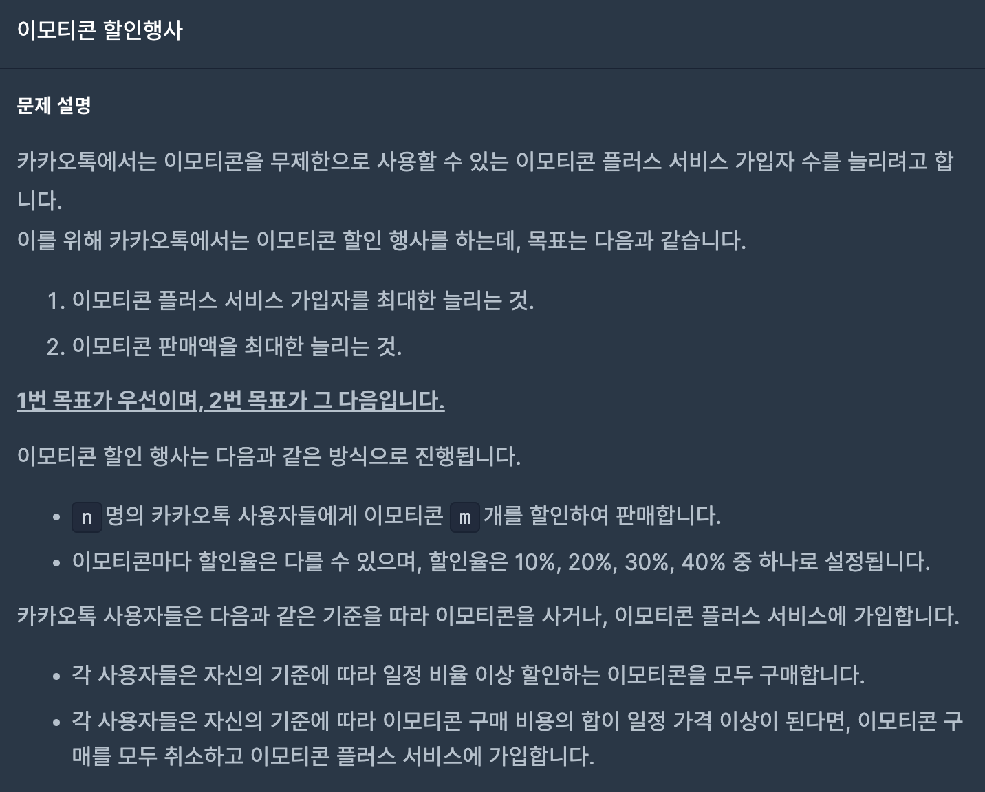 1️⃣ 이모티콘 할인율 (10%, 20%, 30%, 40%)중에서 비율보다 낮은 할인율은 제거