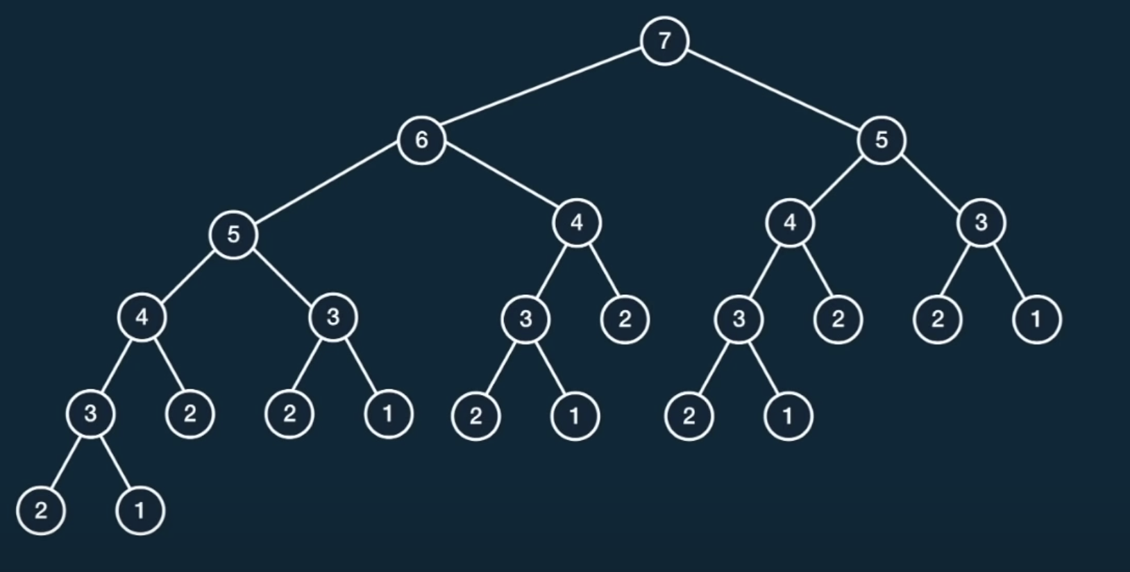 지금 잘 보시면 fib(7) 함수를 실행하면 중복되는 트리가 많이 나옵니다.