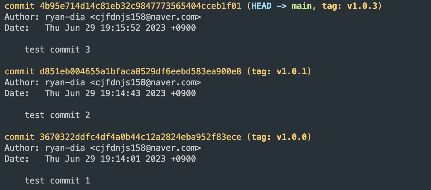 해당 태그네임을 가진 commit으로 바로 이동할 수 있다.