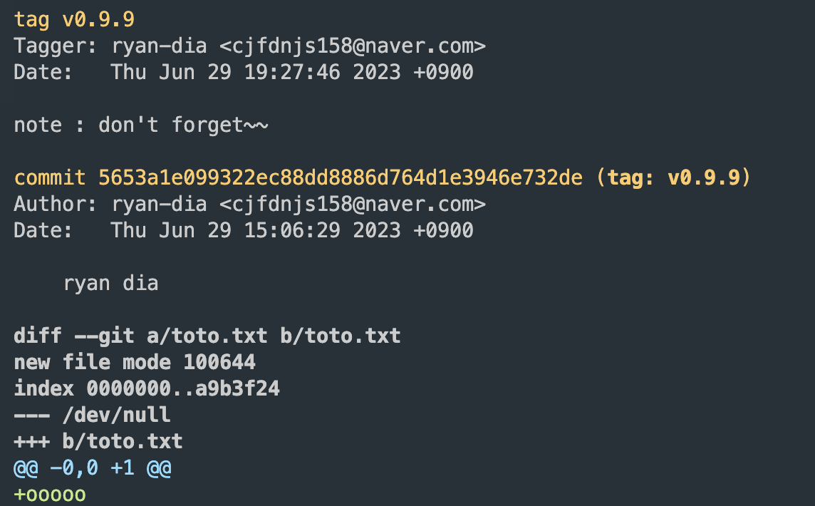 또는 git tag -a <tagname> -m "<message>" 이렇게 할 수도 있다.