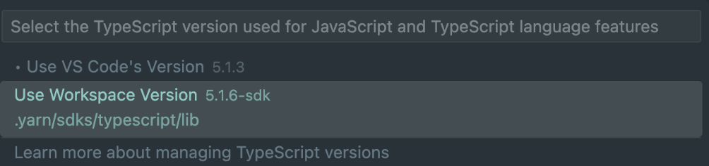 2) `>TypeScript: Select TypeScript Version`을 입력해주세요.3) 아래 Use Workspace Version 5.x.x-sdk를 선택해주세요