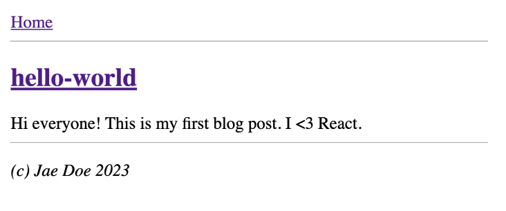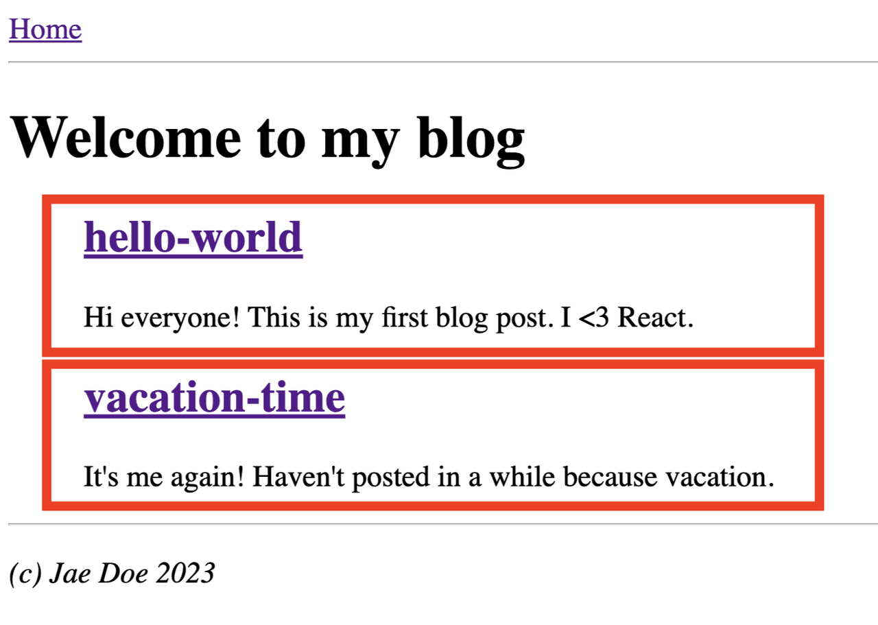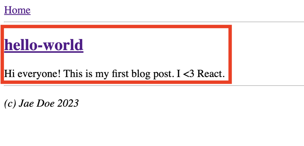새로운 코드에서 볼 수 있듯이 루프에서 `BlogIndexPage`의 모든 파일 내용을 "준비"하는 특별한 로직이 없습니다. 여전히 `BlogIndexPage`는 `Post` 컴포넌트 배열을 렌더링하지만 이제 각 `Post`는 자체 파일을 읽는 방법을 알고 있습니다.