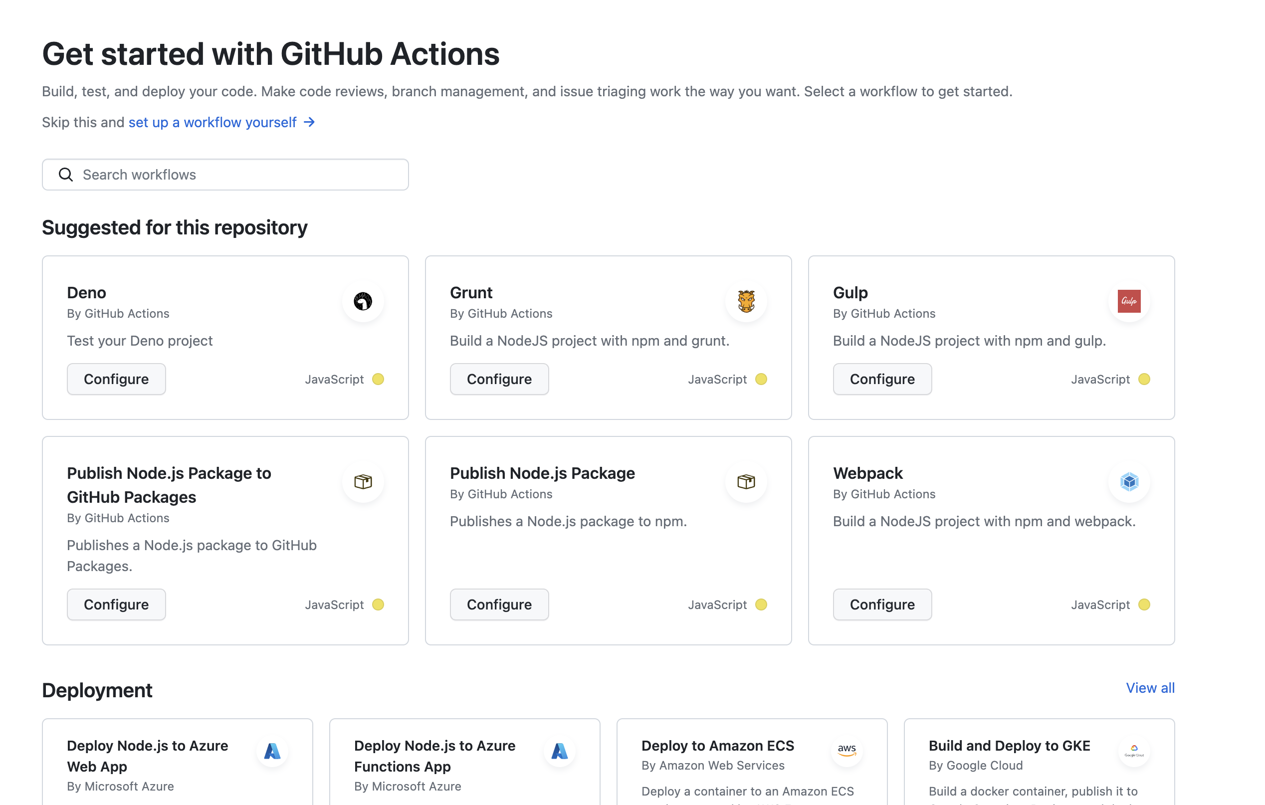 자신만의 action을 작성하거나 GitHub Marketplace의 워크플로에 사용할 action을 찾을 수 있습니다.