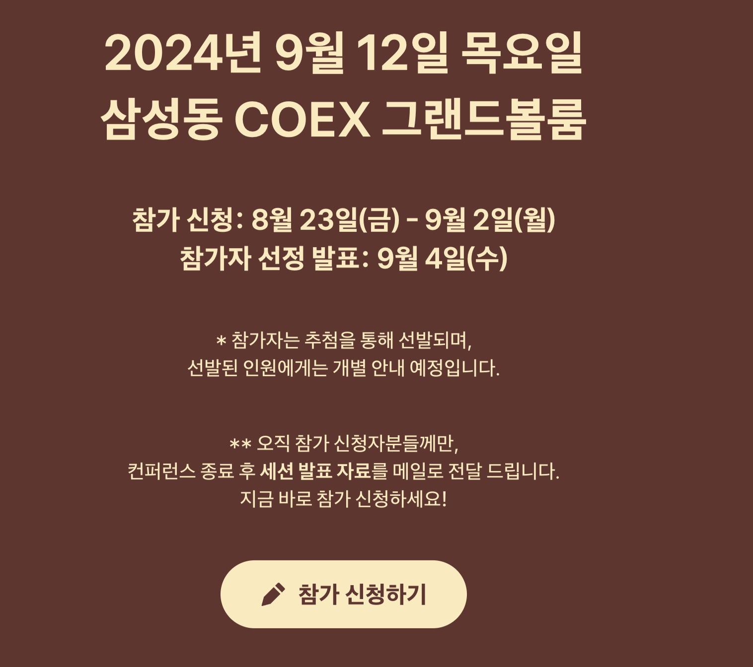 2024년 9월 12일 목요일 삼성동 코엑스에서 진행됩니다.