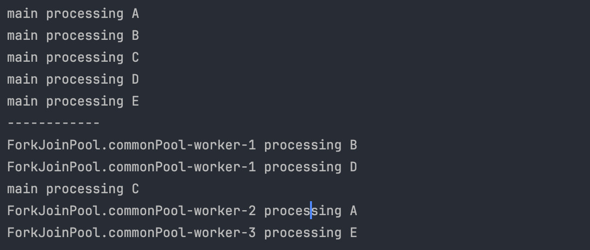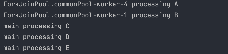 names.parallelStream().forEach(name -> System.out.println(Thread.currentThread().getName() + " processing " + name));