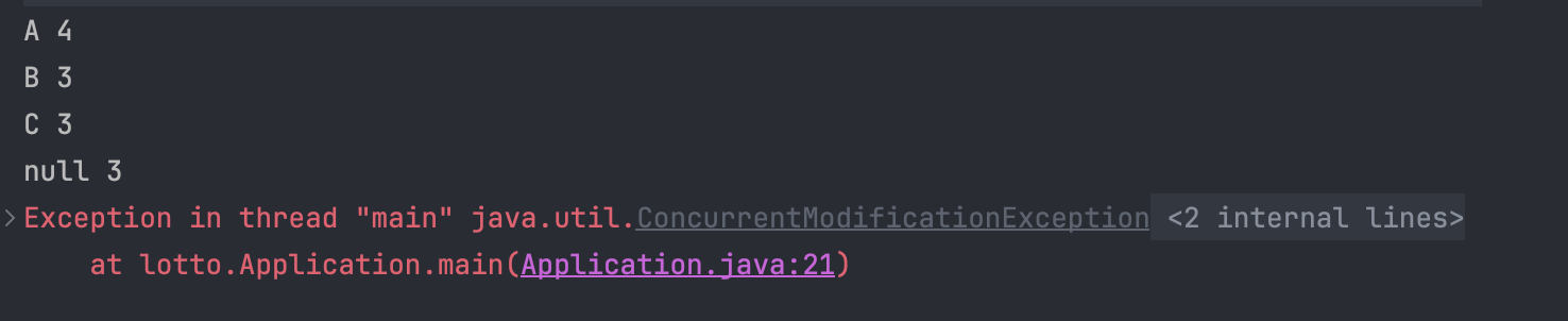 더욱이 컬렉션은 빠르게 실패하도록 설계되어 있기 때문에 수정이 있으면 즉시 예외가 발생합니다.