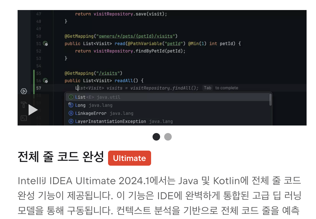 그렇기에 큰 문제가 없었고 인텔리제이 2024.1 버전에서 추가된 기능인 전체 줄 코드 완성이 꽤 도와도 줬다.