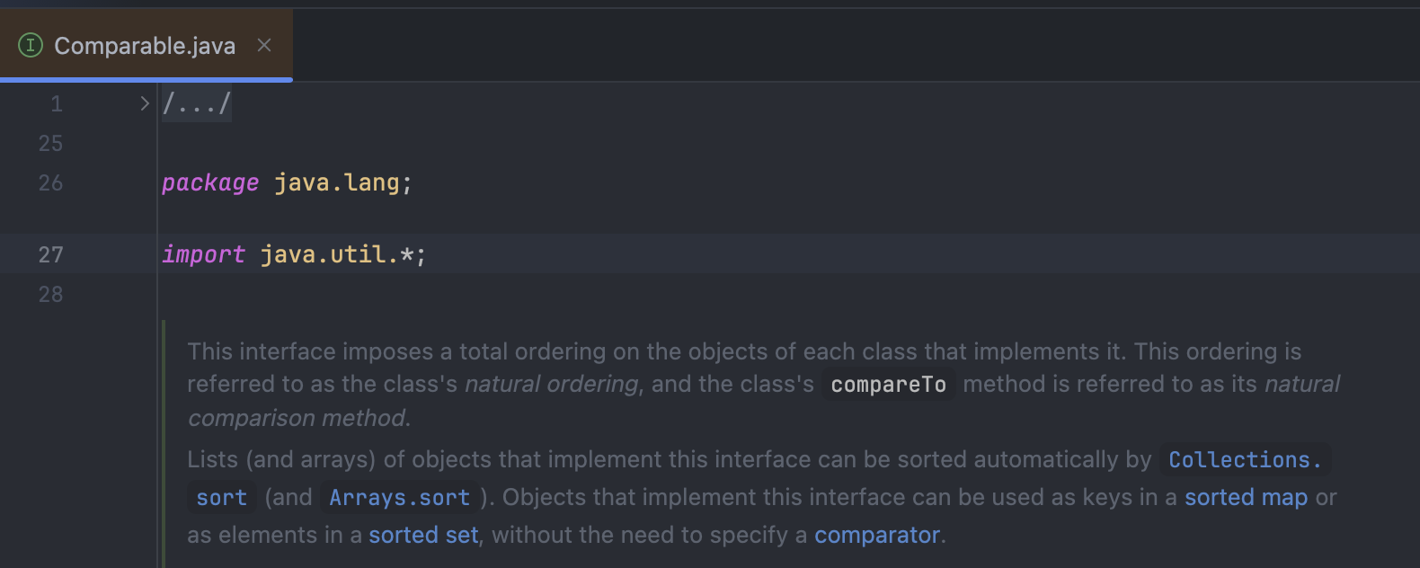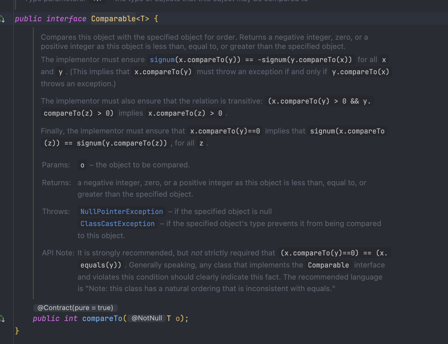 Comparable 주석을 해석해보면 아래와 같다.
