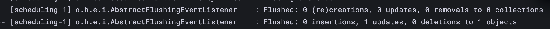 Hibernate는 flush 시점에 몇 개의 엔티티가 반영되었는지 다음과 같이 로그를 남긴다.