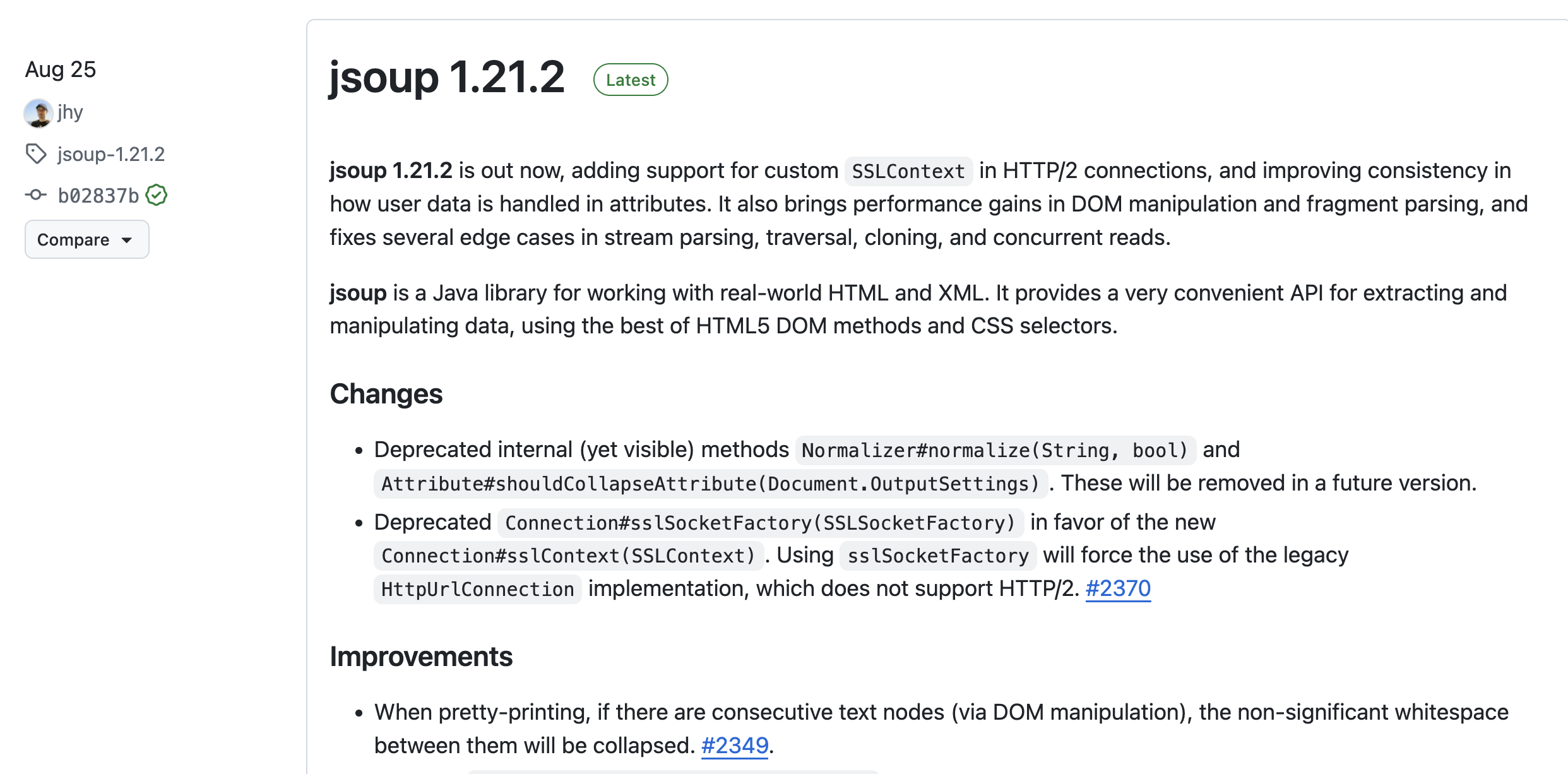 0 dependency + 소형 JAR이라, “메일 처리용 유틸에 괜히 거대한 HTML 파서를 끌어오고 싶지 않다”는 팀에 잘 맞는다.